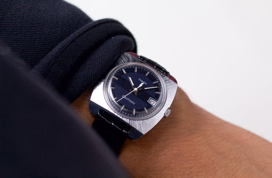 [Serviced] 1974 Timex Electronic Tri-Textured Midnight Blue Dial Men's Wrist-Watch
