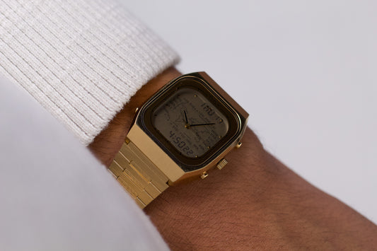 1994 Pulsar Quartz Linen Golden Dial Tank Men's Wrist-Watch