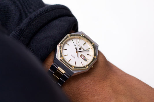 1991 Pulsar Quartz Stark White Dial Two Tone Men's Wrist-Watch