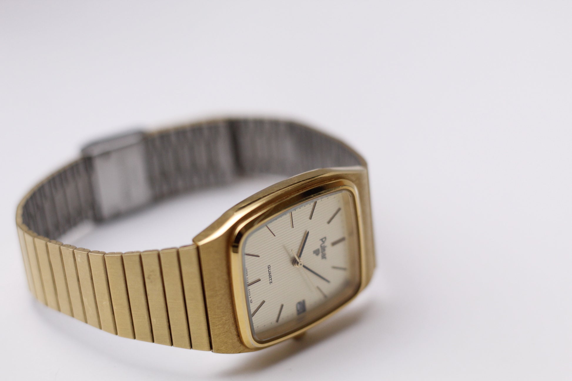 1984 Pulsar Quartz Striped Golden Dial Men's Wrist-Watch