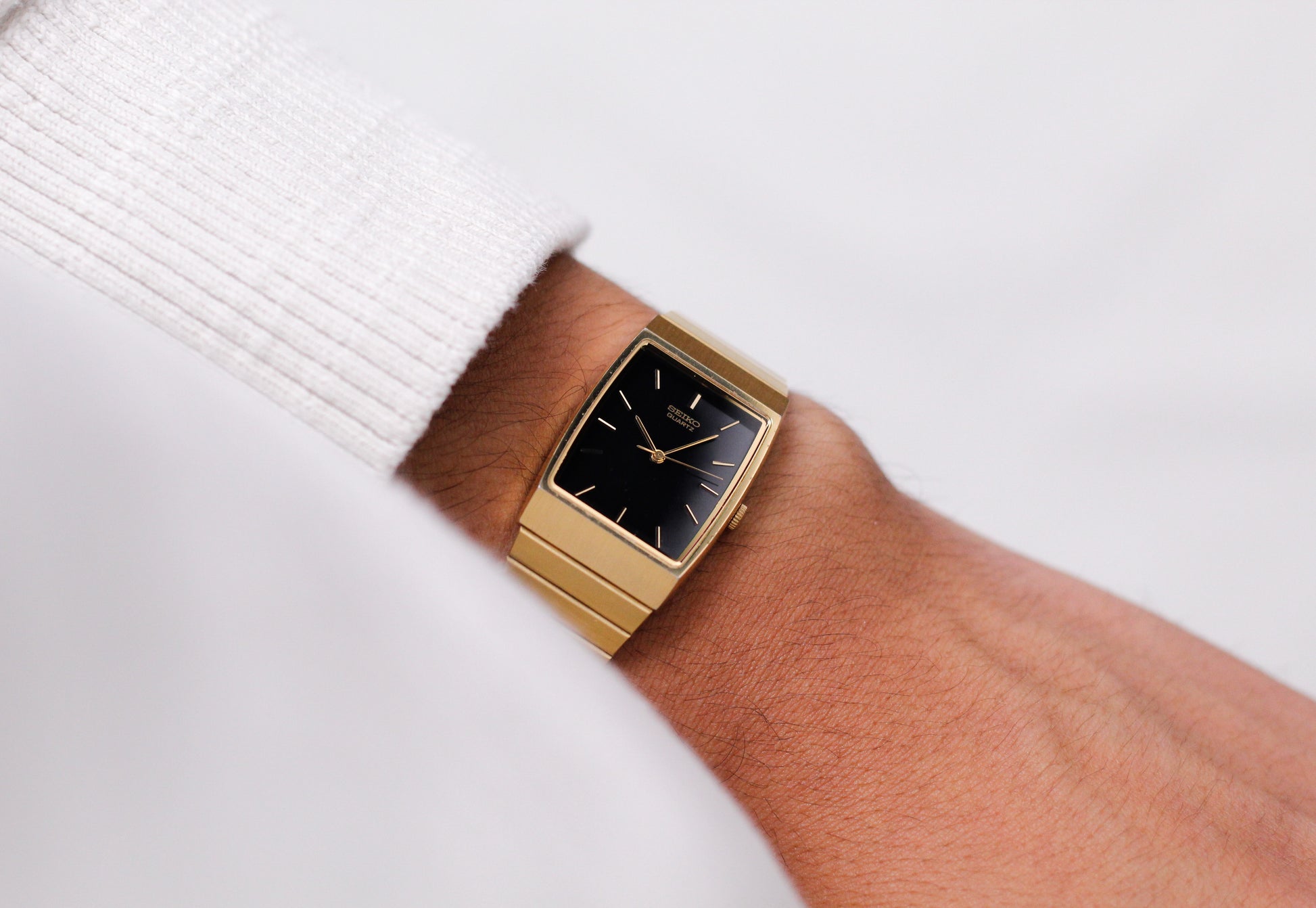 1988 Seiko Quartz Inky Black Dial Tank Men's Wrist-Watch