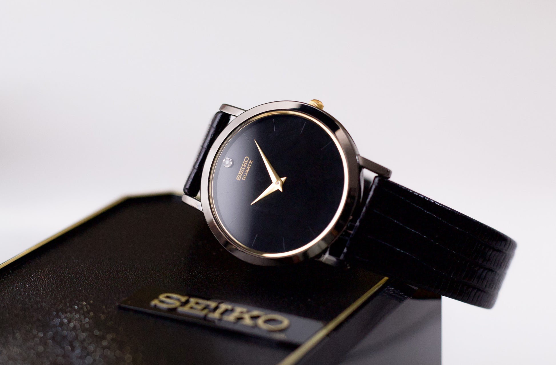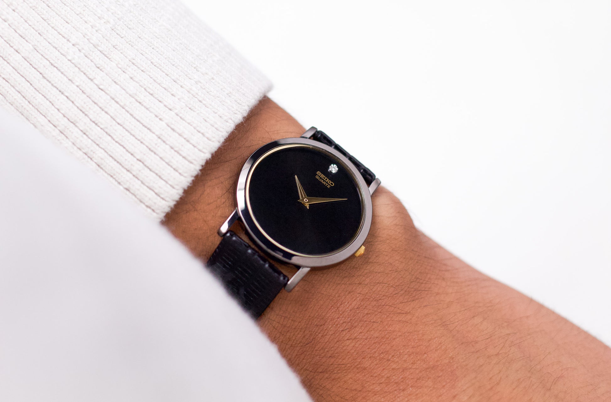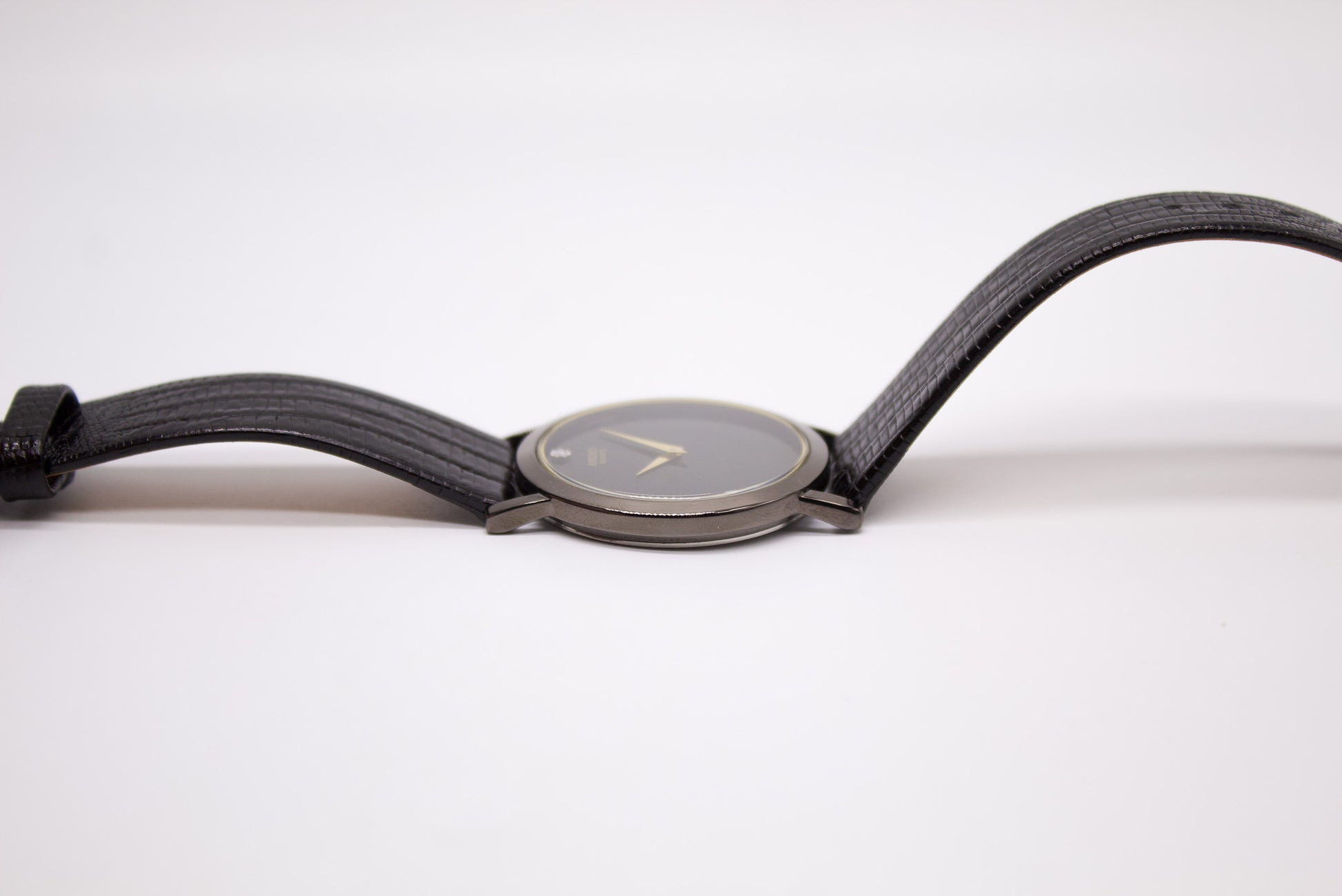 1990s Seiko Quartz Inky Black Dial Men's Wrist Watch Full-Set