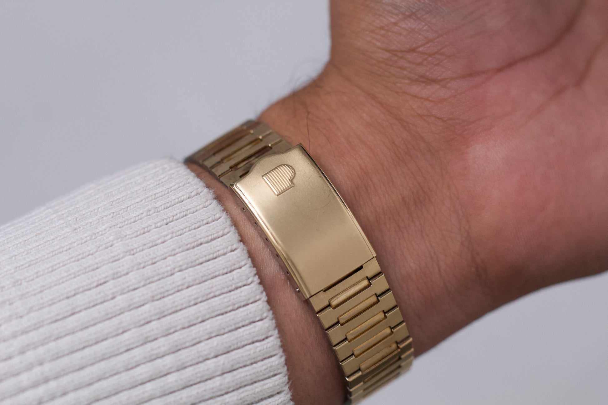 Housing this watch is a gold toned ‘TV’ style case that is paired with a fantastic bracelet.