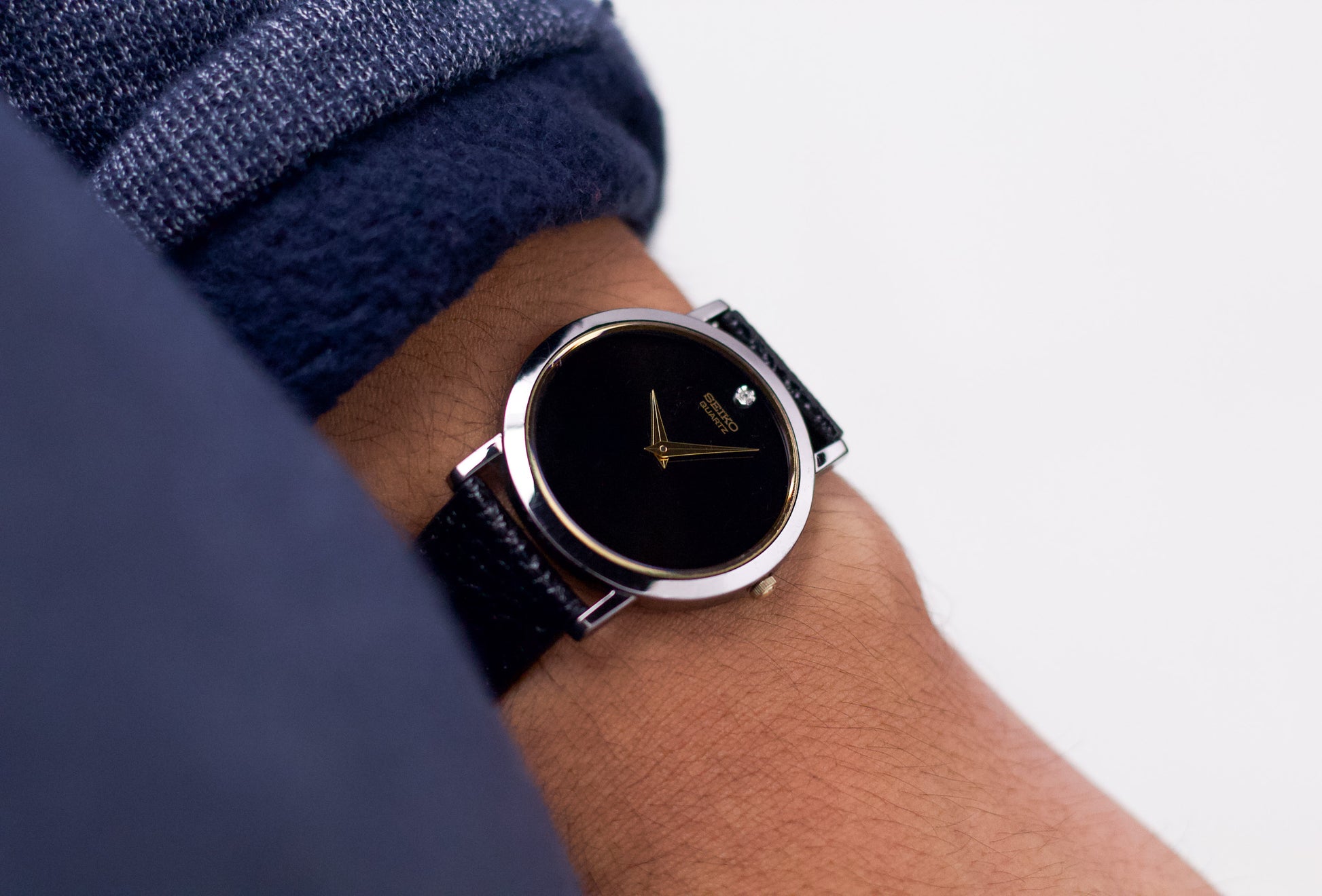 1994 Seiko Quartz Inky Black Dial Men's Wrist Watch