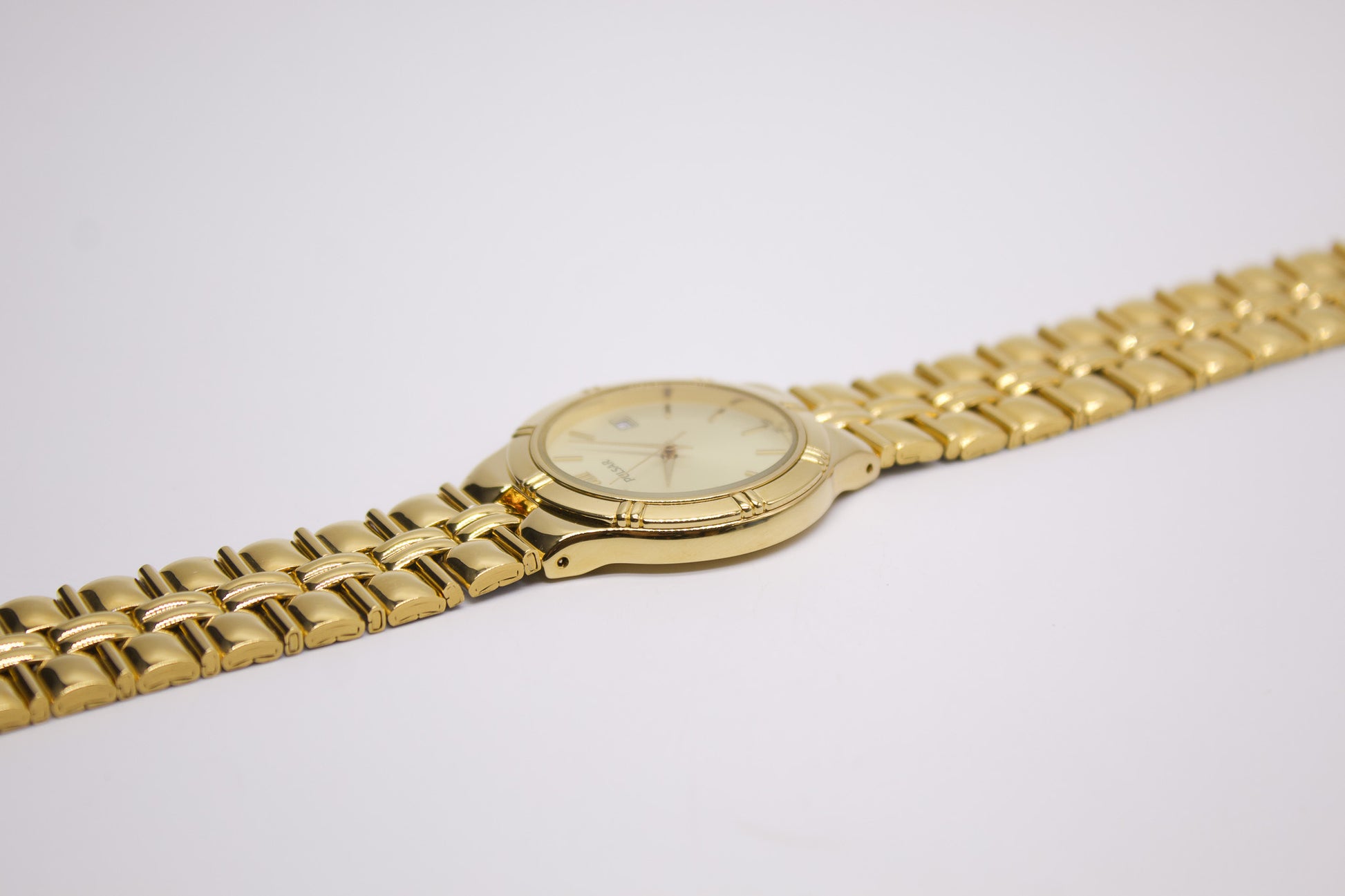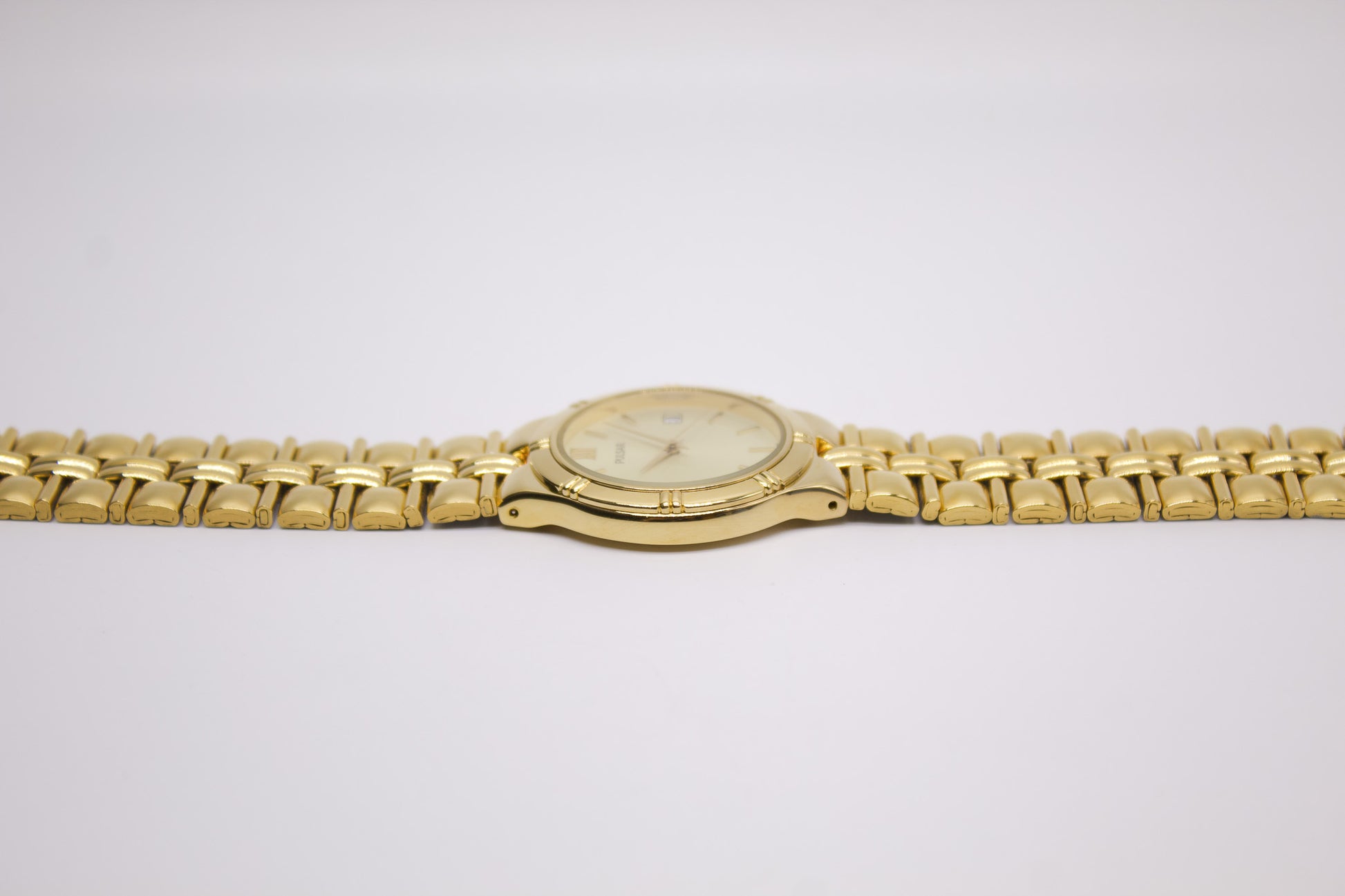 1997 Pulsar Quartz Golden Sunburst Dial Men's Wrist-Watch W/Box & Papers