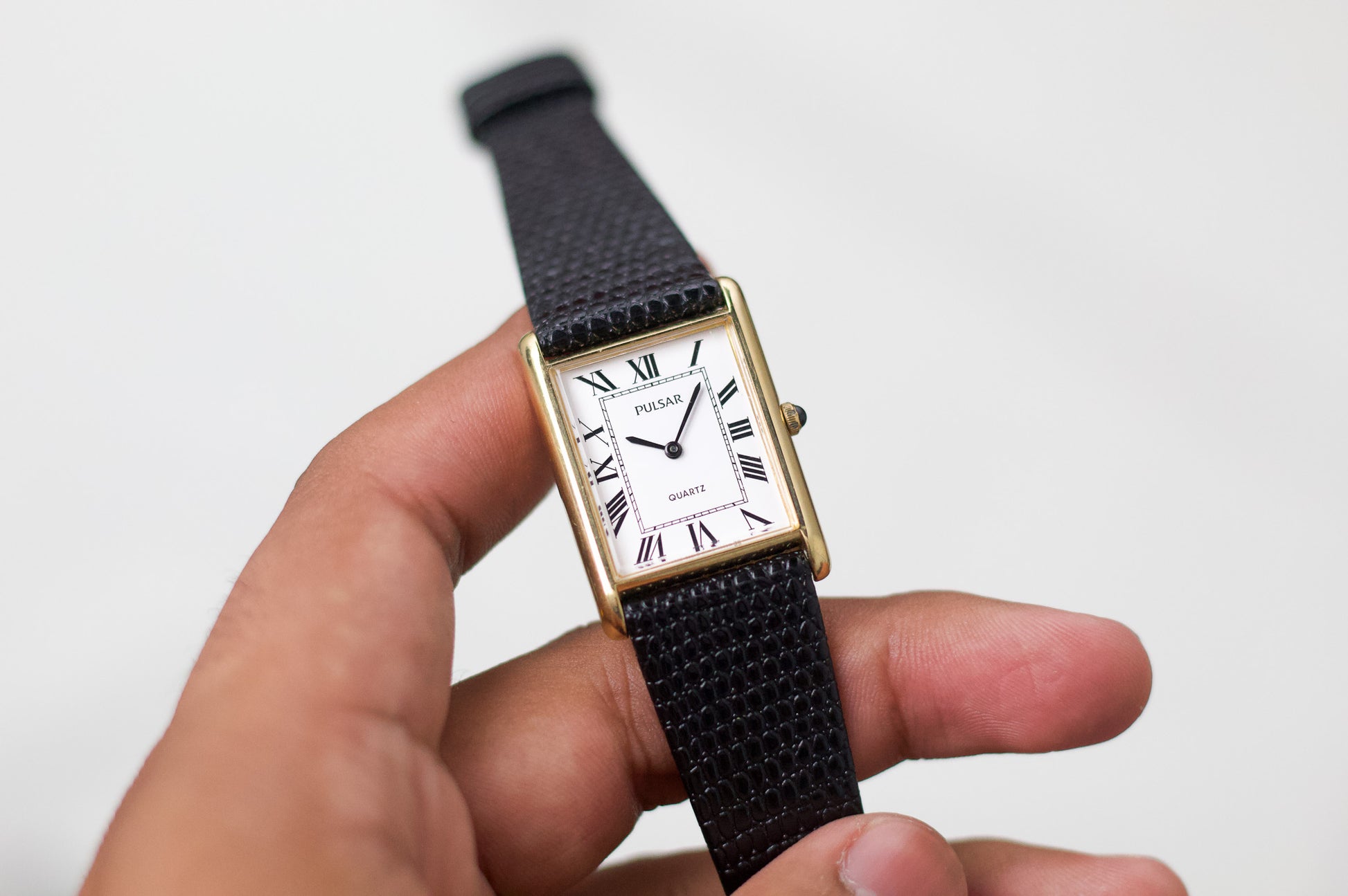 For those who are looking for that classy ‘tank’ look without breaking the bank, then perhaps this 1997 Pulsar REF: V320-5350 is just the watch.