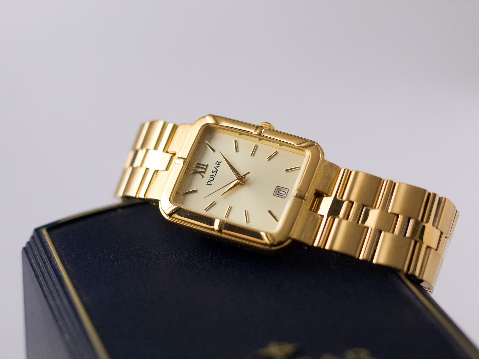 2000 Pulsar Quartz Champagne Sunburst Dial Men's Wrist-Watch W/Box