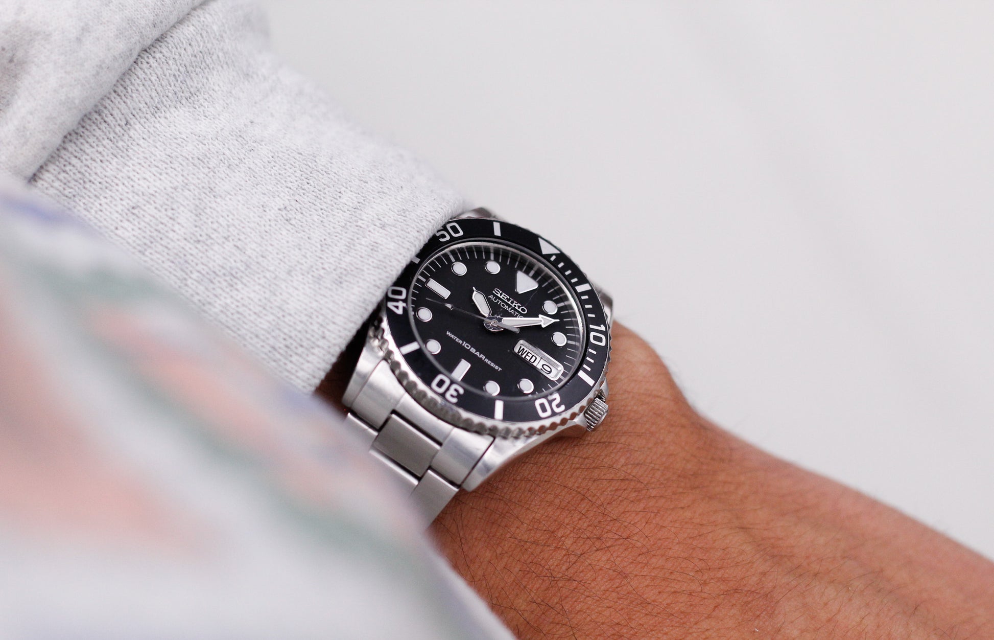 This watch features a stunning matte black dial that is paired with indices and hands that are filled with Seiko’s famous Lumi-brite lume for a great glow.