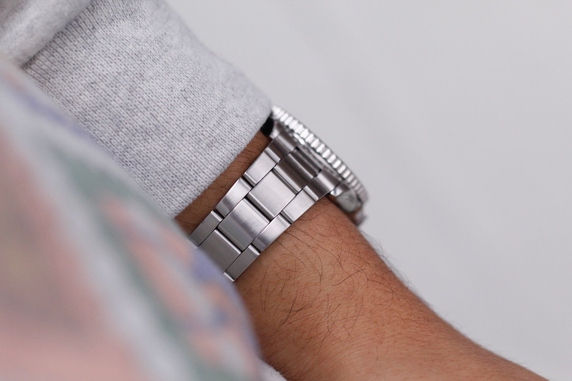 Housing this watch is a ‘submariner’ style case that features a bi-directional bezel and a wonderful Oyster style bracelet.