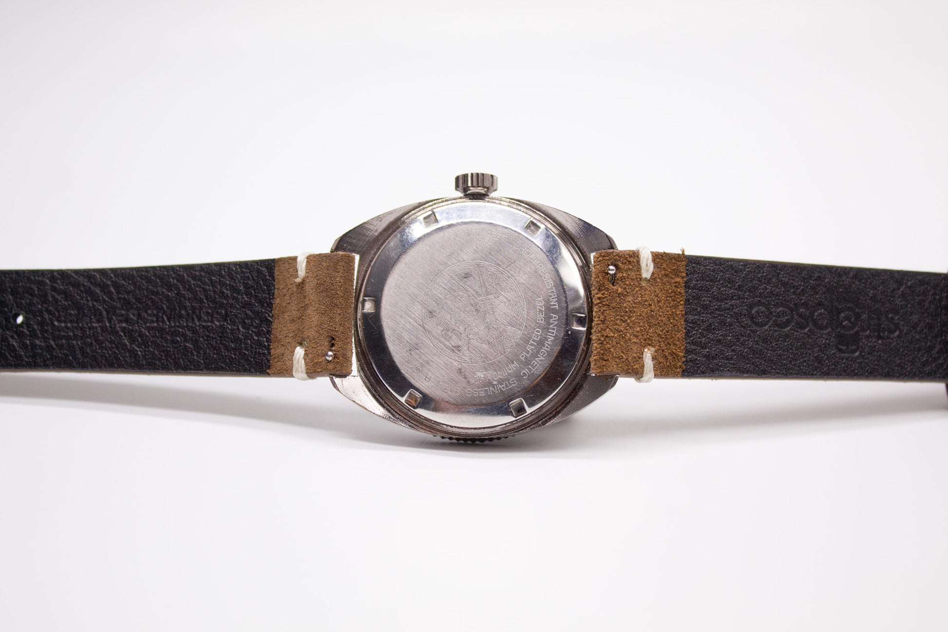 [Serviced] 1960s Neptune World Timer Mechanical Inky Black Dial Men's Wrist-Watch