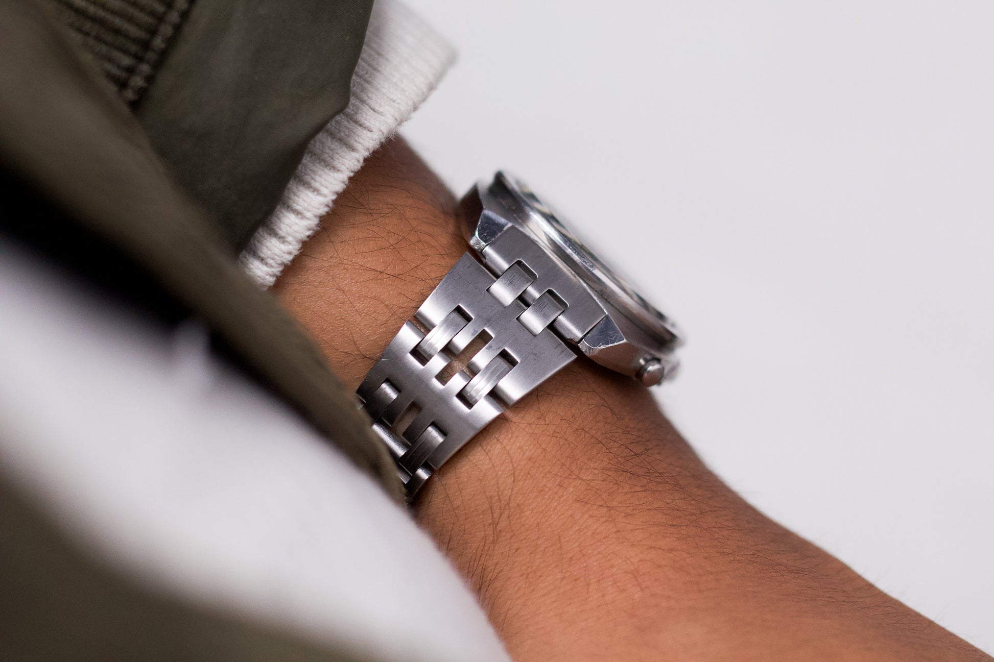 Housing this watch is a notched variant stainless steel cushion case that sits on the wrist comfortably.