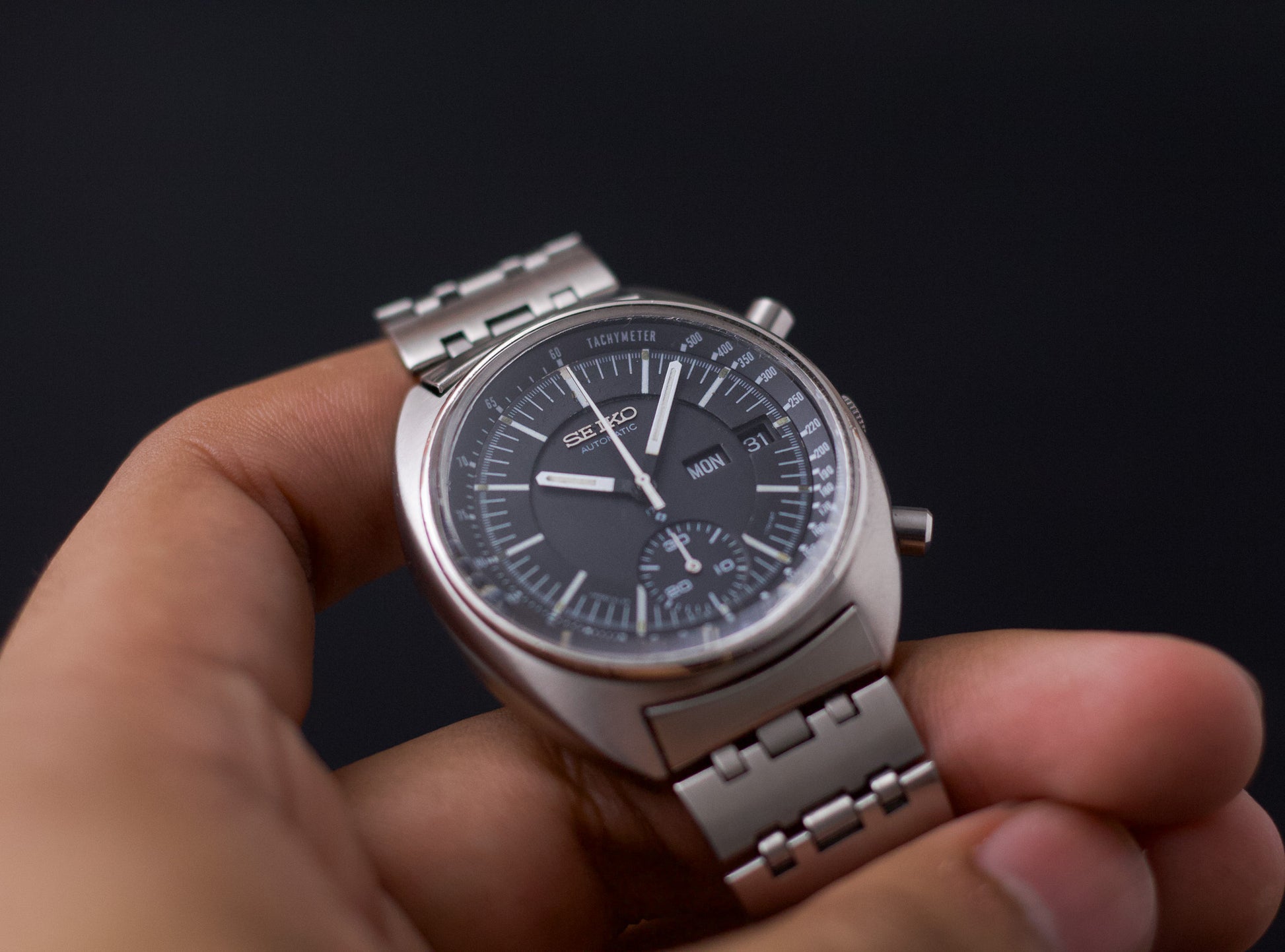 [Serviced] 1972 Seiko Automatic Chronograph 'Baby Speedmaster' Matte Black Dial Men's Wrist-Watch